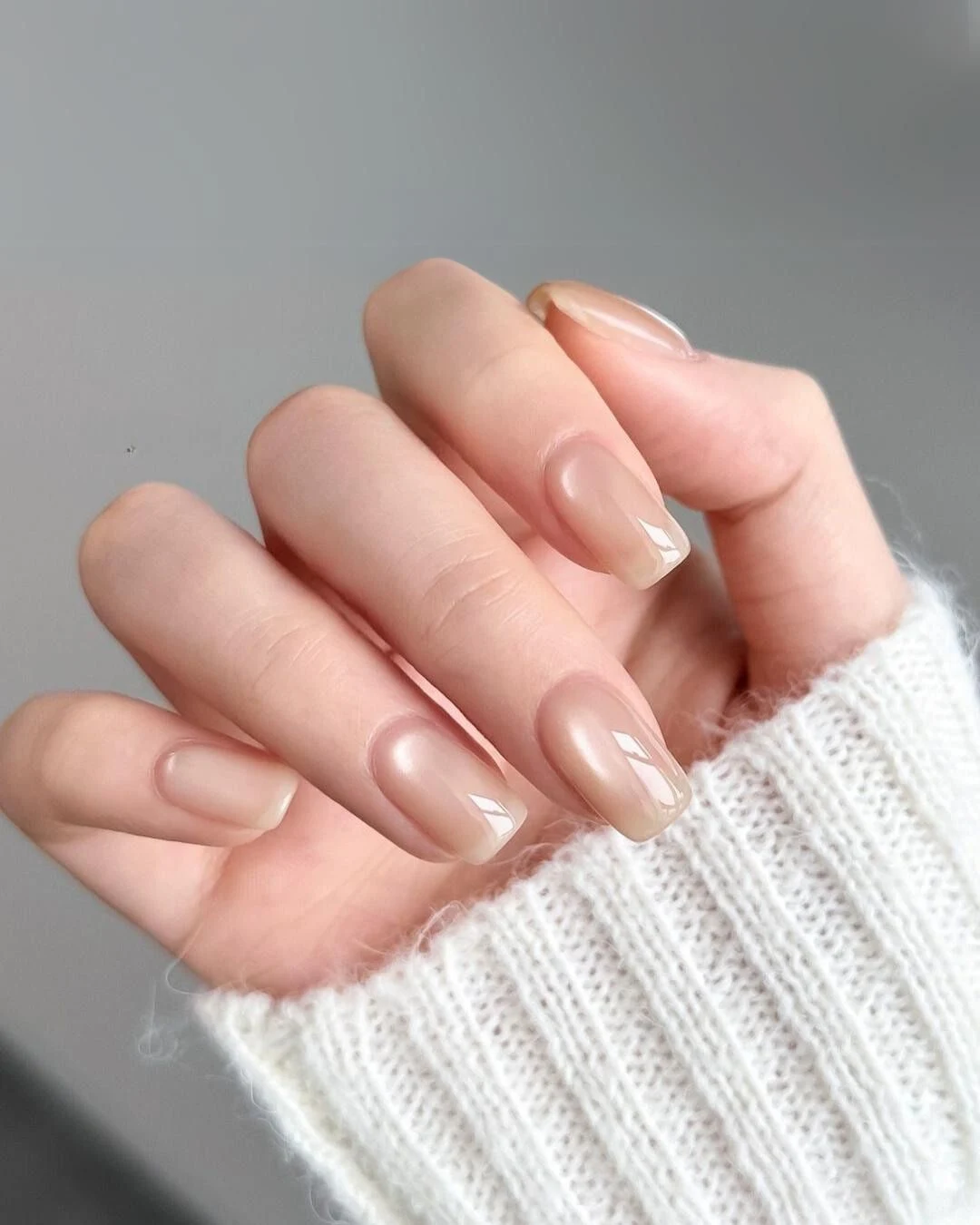 Neutrale Nägel, aber bitte nicht langweilig. Beige, Taupe oder milchig rosa mit Cat-Eye-Schimmer gibt pure Velvet-Vibes. Noch cuter? Kleine Sternenakzente, die den Glow richtig betonen.