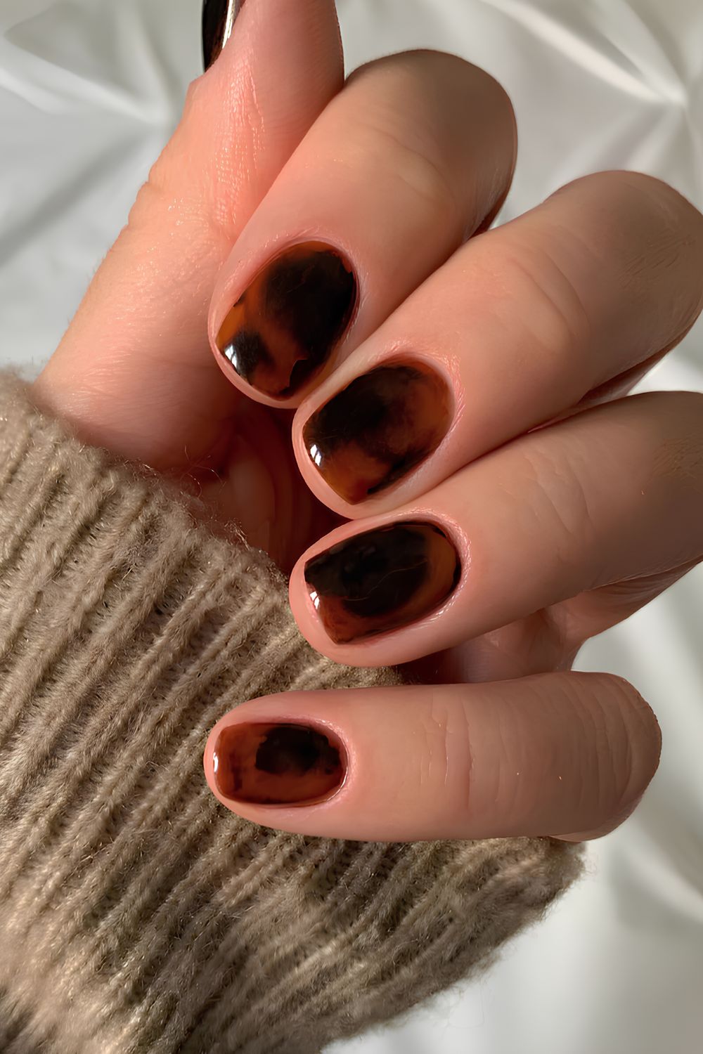 Schildpatt-Nägel sind das Maximum an Auffälligkeit innerhalb dieser Ästhetik und wirken trotzdem klassisch. Die warmen, stimmungsvollen Töne sind ideal für deine September-Mani und den Übergang zu kühlerem Wetter. Bonus: Sie passen auch hervorragend zur Dark-Academia-Ästhetik.